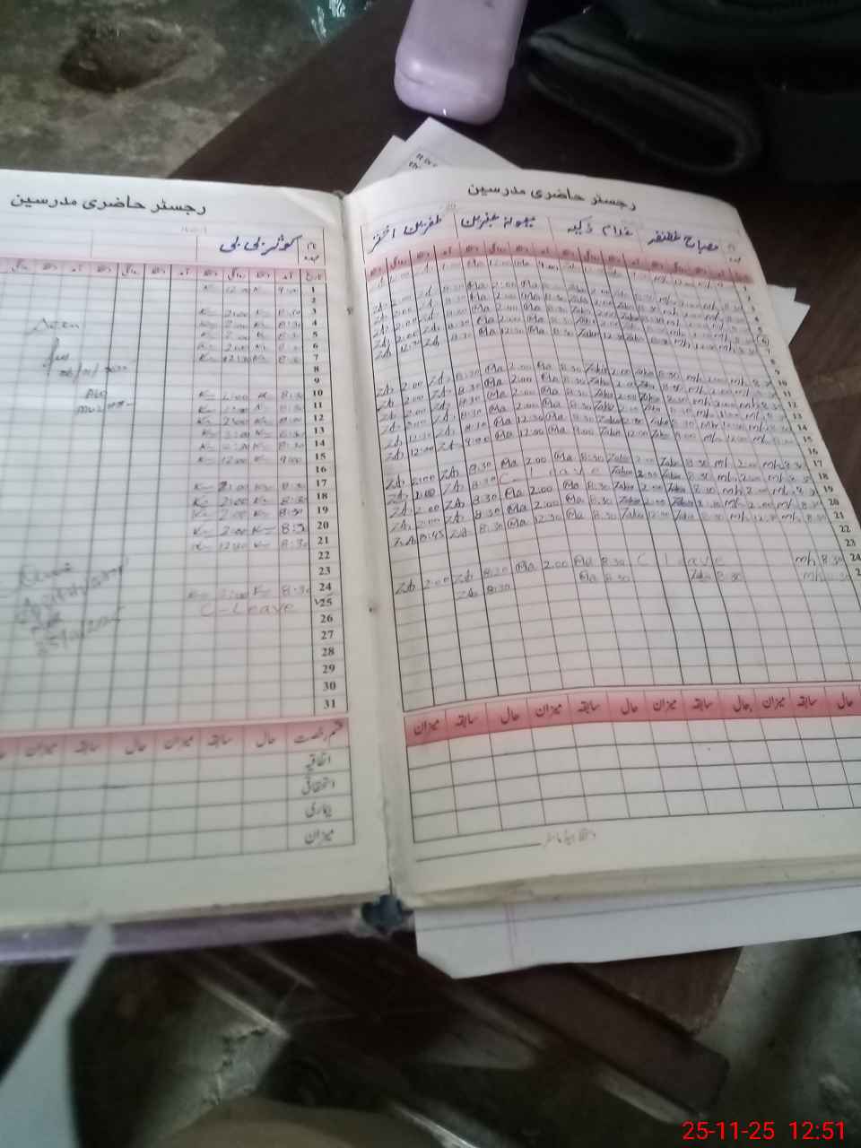 | CNIC | Full Name | Designation | R/C | Absence During Last Calender Month |