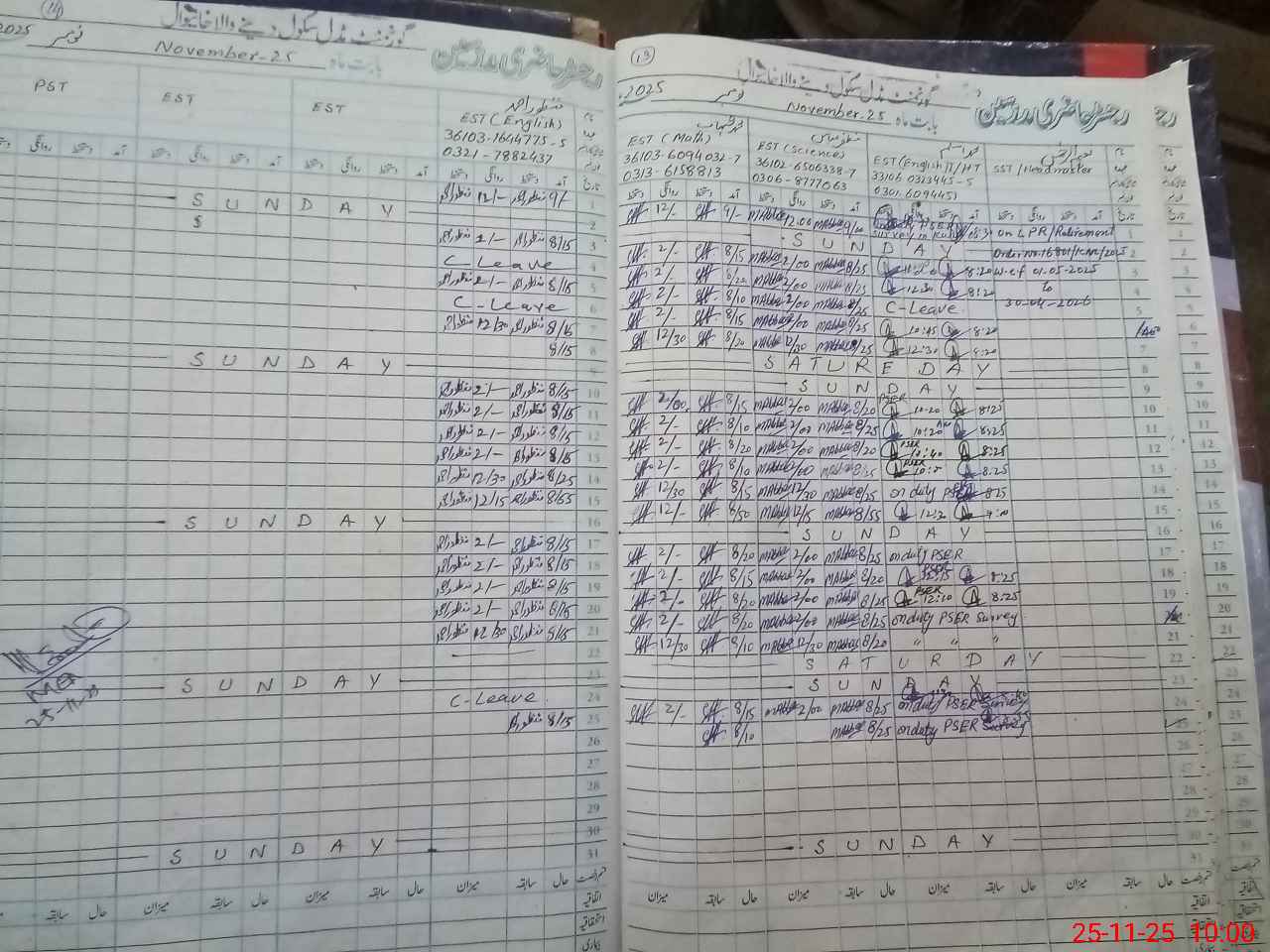 | CNIC | Full Name | Designation | R/C | Absence During Last Calender Month |