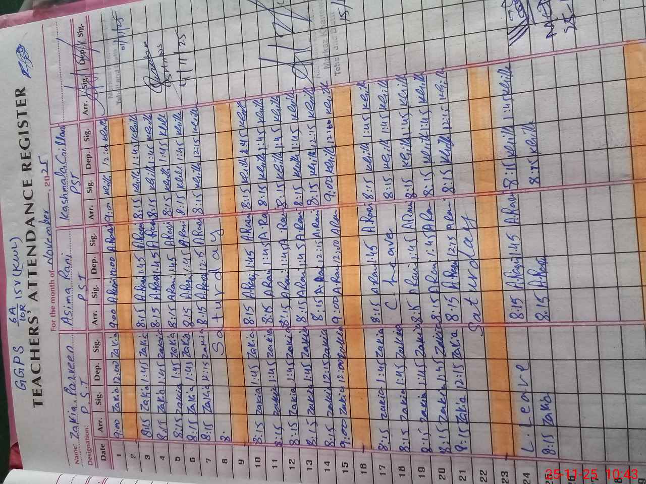 | CNIC | Full Name | Designation | R/C | Absence During Last Calender Month |