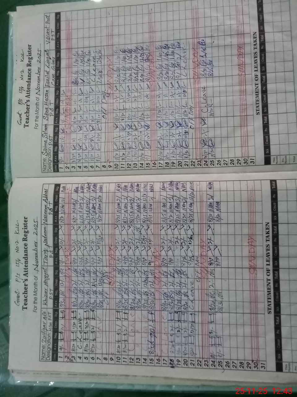 | CNIC | Full Name | Designation | R/C | Absence During Last Calender Month |