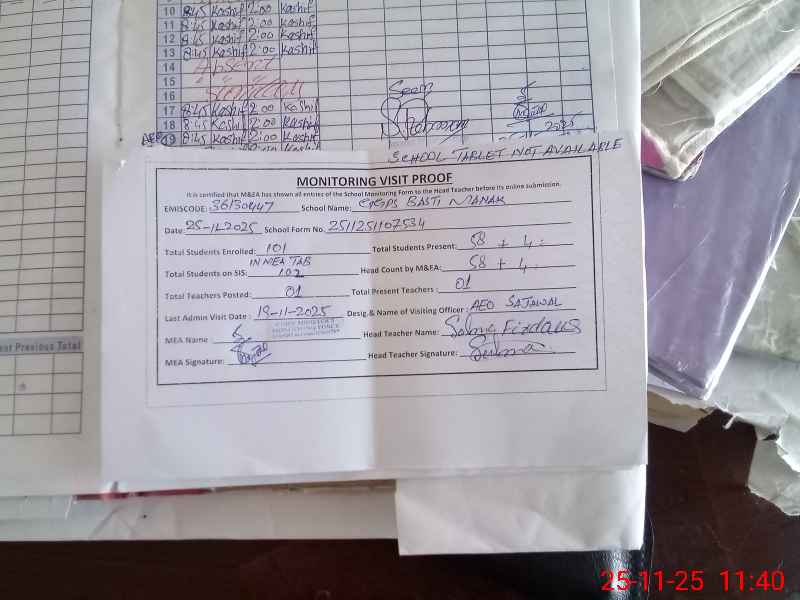 | EMIS Code: 36130447 | Name of School: GGPS BASTI MANAK MOUZA DAR WALA MULTAN | |||
