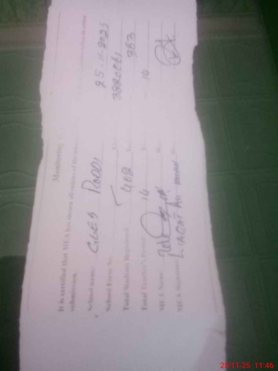 | Certified that this School was Inspected by the Undersigned MEA/DMO Today and the Information Stated Above is as Per Record. | |||||