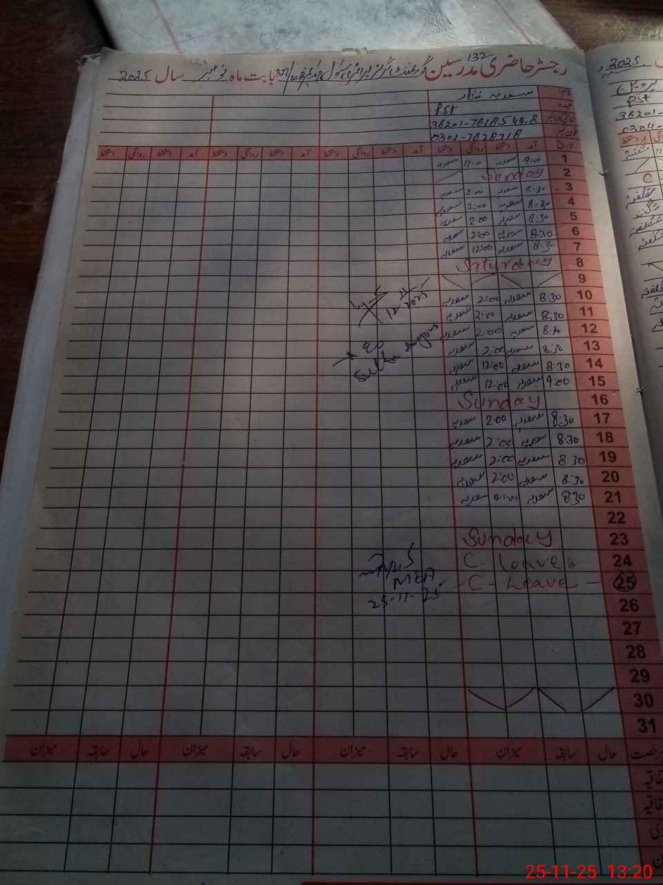 | CNIC | Full Name | Designation | R/C | Absence During Last Calender Month |