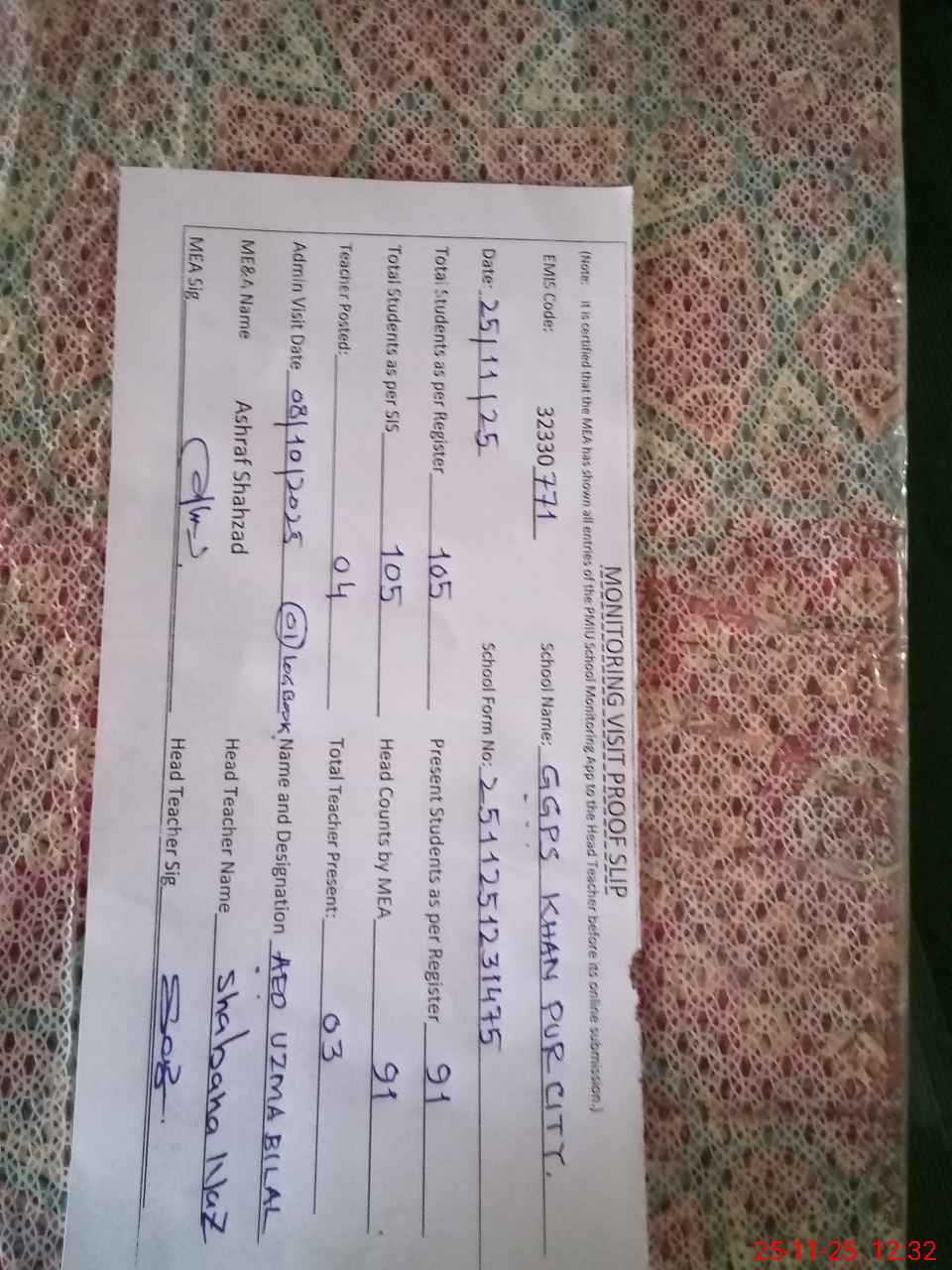 | EMIS Code: 32330771 | Name of School: GGPS KHANPUR CITY | |||