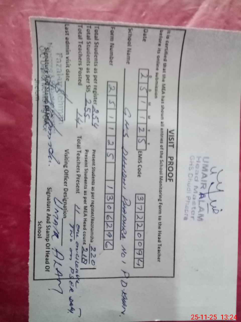 | EMIS Code: 37220094 | Name of School: GHS NO.1 DHUDHI PHAPHRA | |||