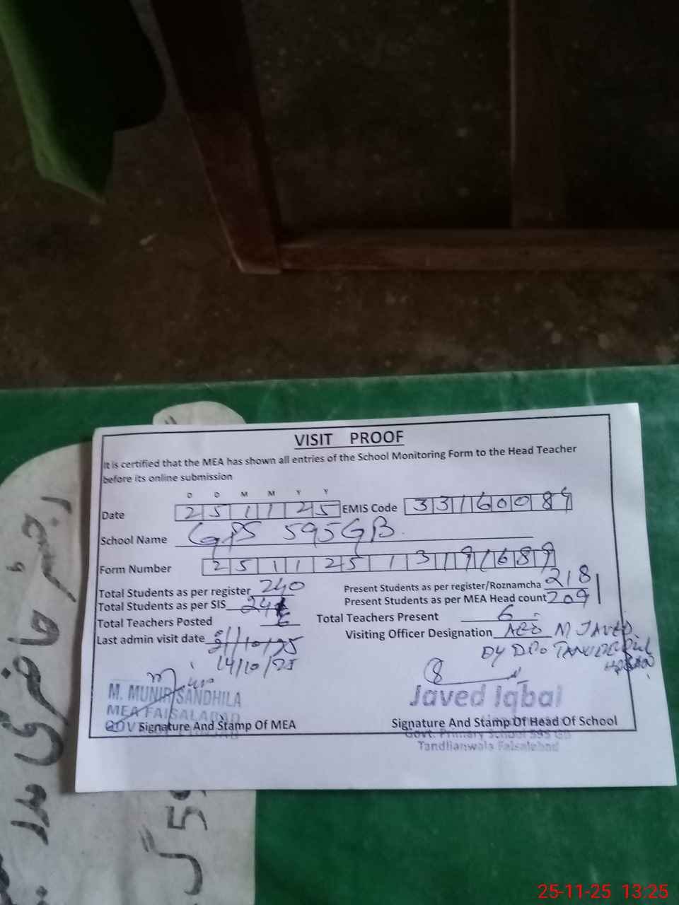 | Certified that this School was Inspected by the Undersigned MEA/DMO Today and the Information Stated Above is as Per Record. | |||||