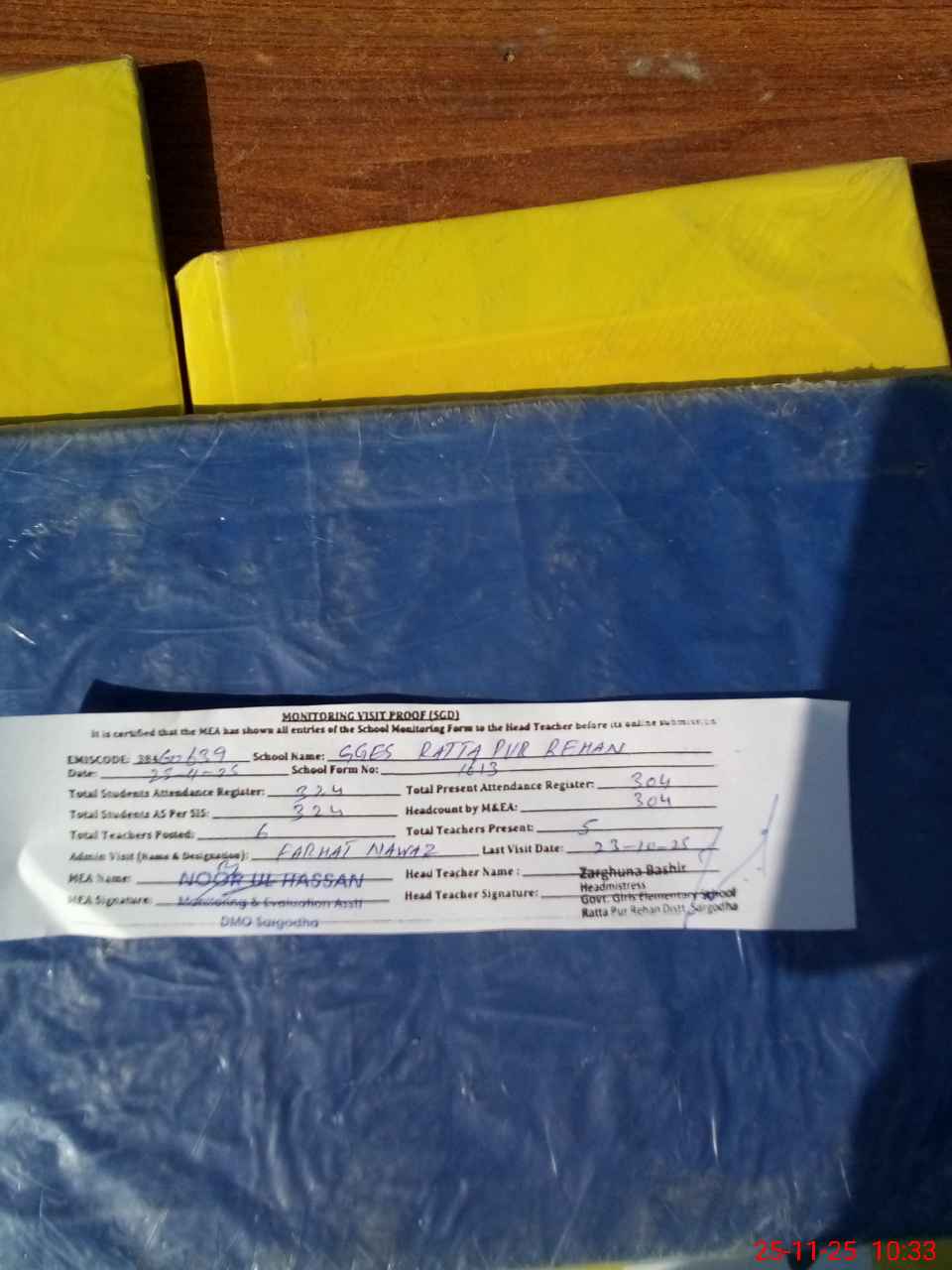 | Attendance Register | Head Teacher | MEA with School | Visit Proof |