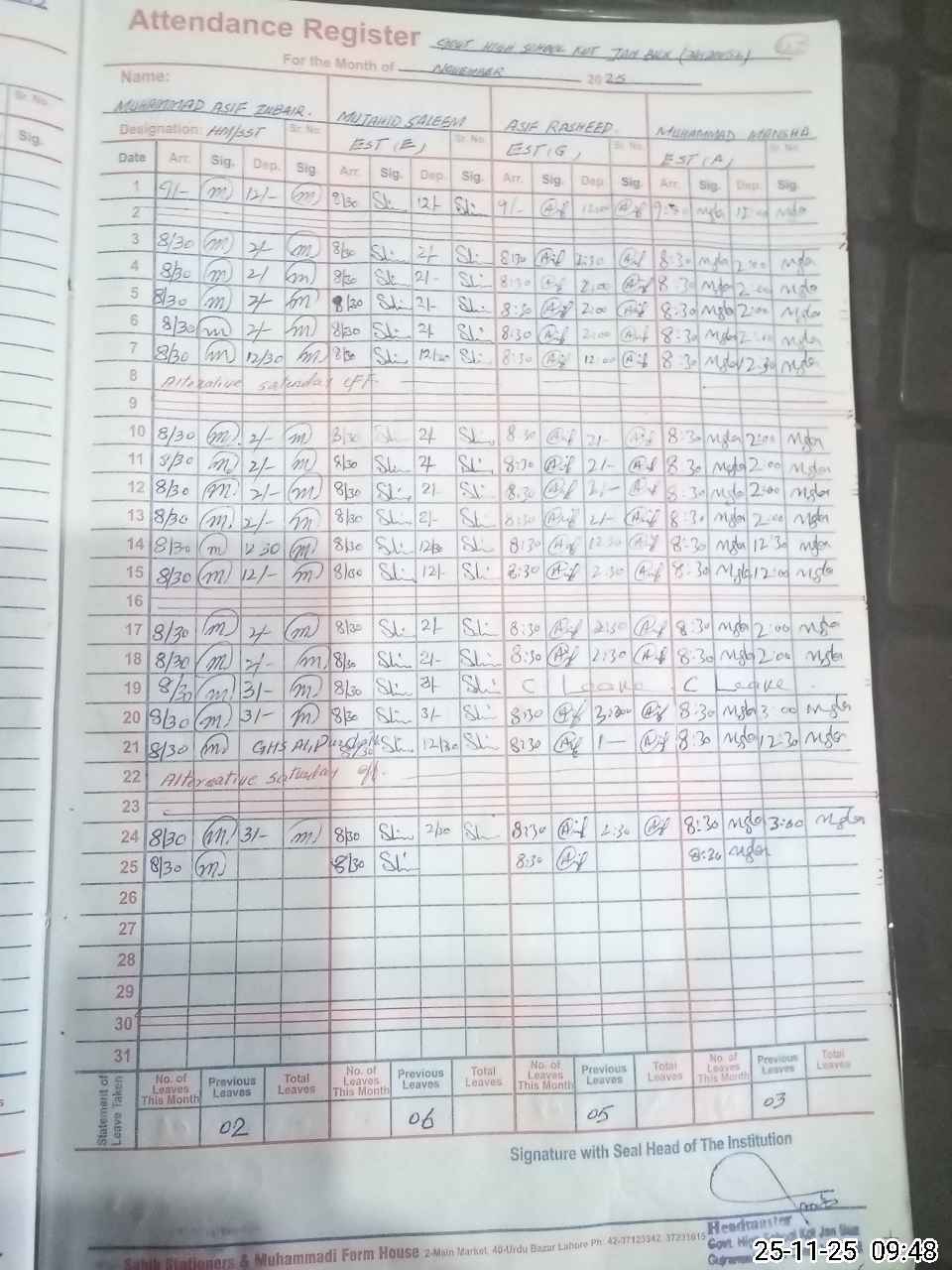 | 34**** | Kh**** Ja**** | EST | Regular | 0 | 0 | 0 | 0 | 0 | 0 | 0 | 0 | 0 | Absent (Un-Authorized) |
