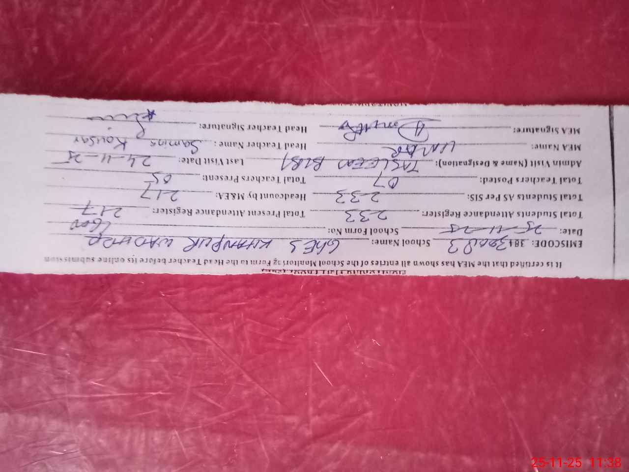 | Attendance Register | Head Teacher | MEA with School | Visit Proof |