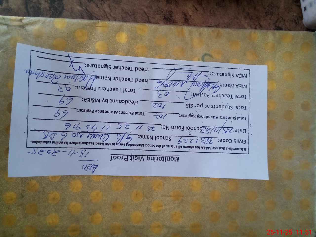 | Certified that this School was Inspected by the Undersigned MEA/DMO Today and the Information Stated Above is as Per Record. | |||||