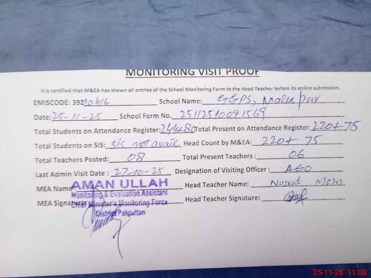 | EMIS Code: 39210416 | Name of School: GGPS MALIK PUR | |||
