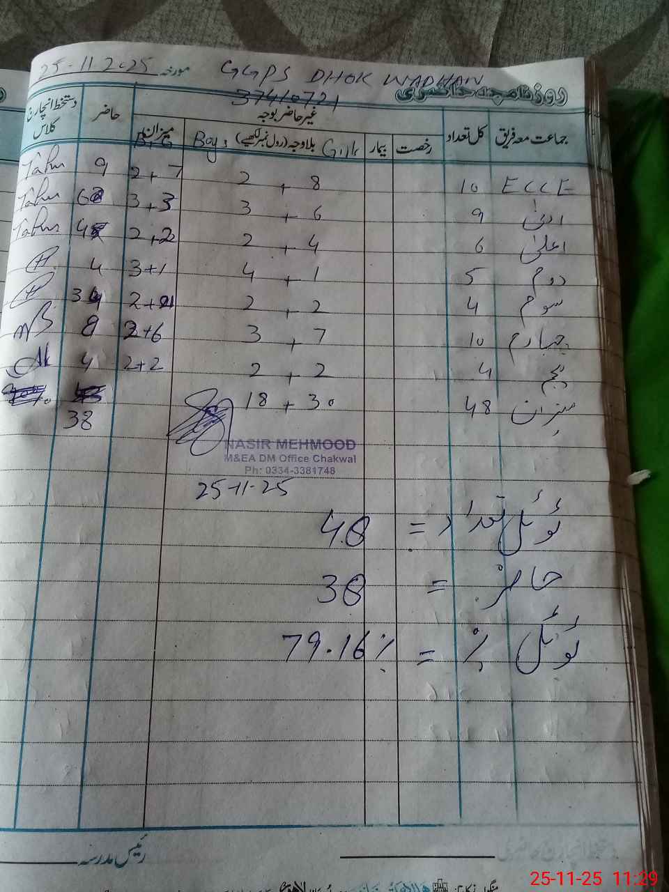 | Name: Ta**** Iq**** Designation: (School Headmaster's/Headmistress's) HEADMISTRESS Phone/Cell Number: 03**** |