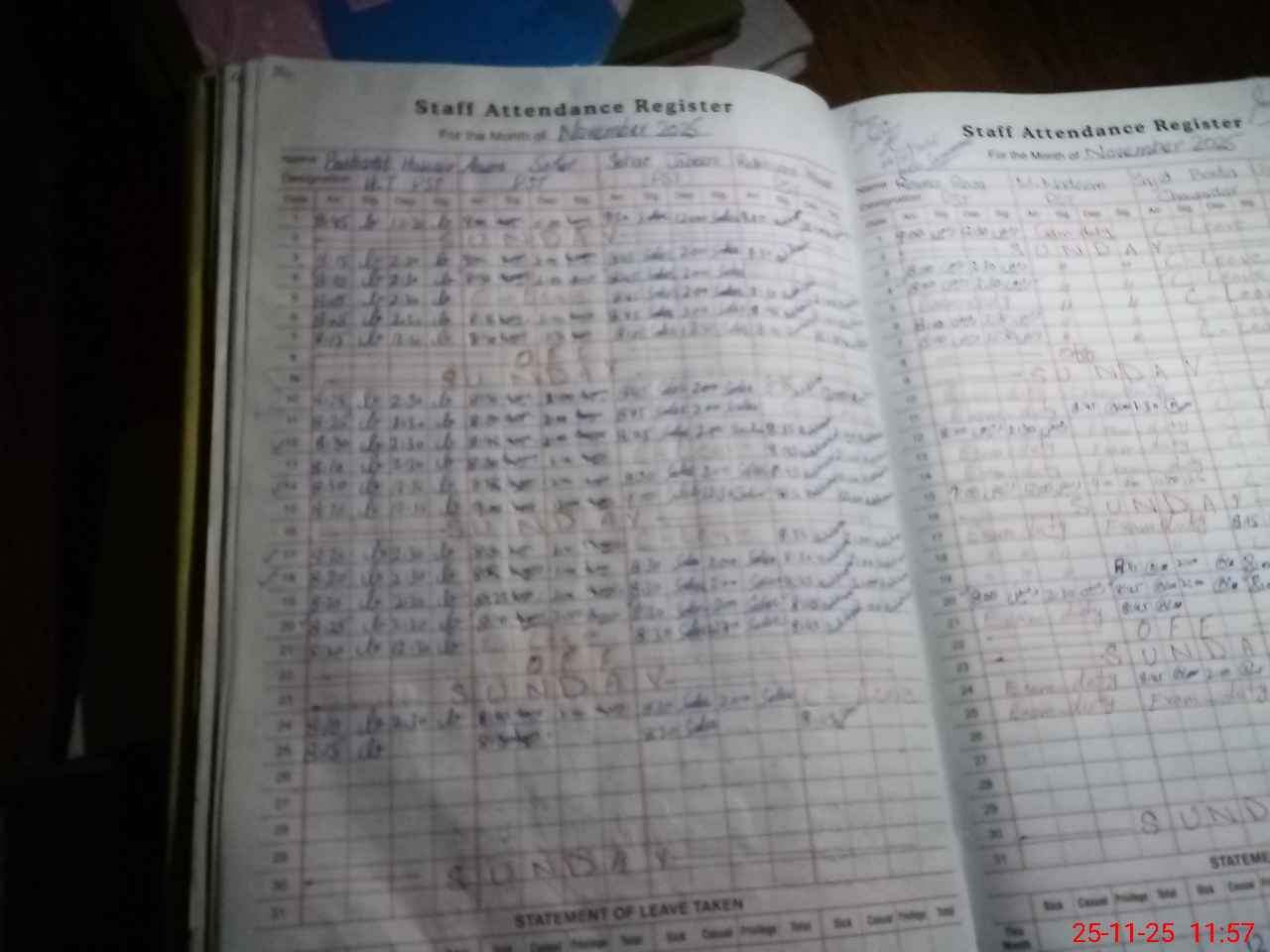 | 00**** | SA**** BO**** | CHOWKIDAR | Regular | 2 | 0 | 0 | 0 | 0 | 0 | 0 | 0 | 2 | Casual |
