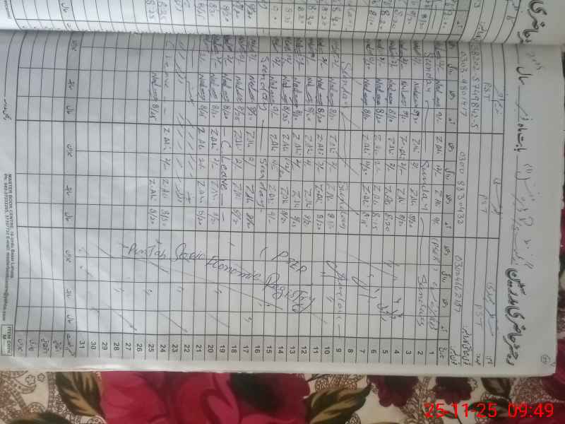 | CNIC | Full Name | Designation | R/C | Absence During Last Calender Month |