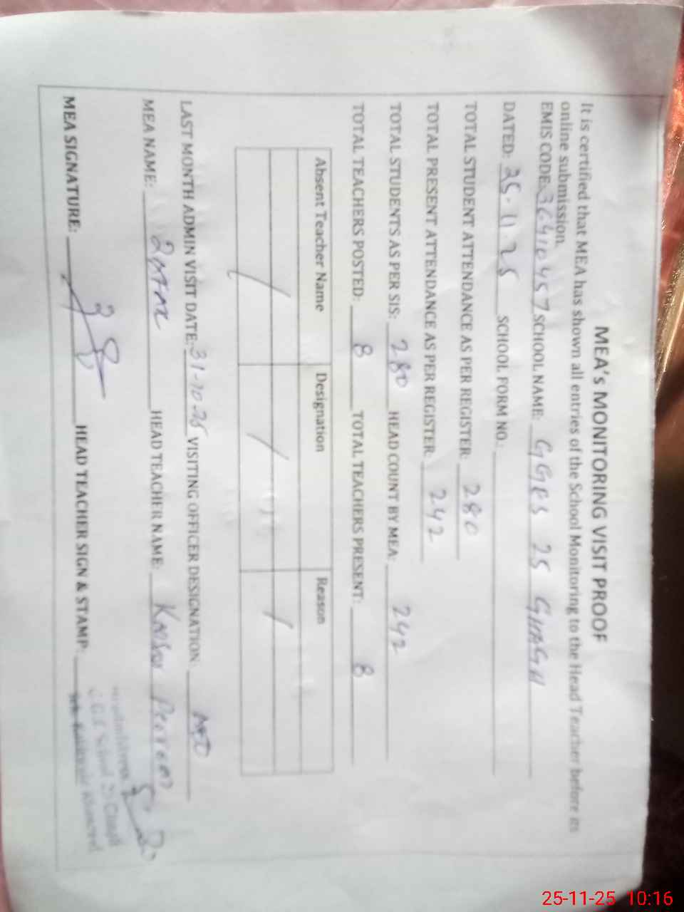 | EMIS Code: 36410457 | Name of School: GGES 25 GHAGH, ABDUL HAKIM | |||