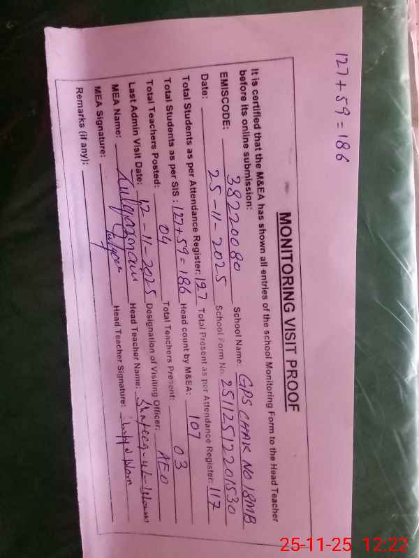 | EMIS Code: 38220080 | Name of School: GPS CHAK NO. 18/MB | |||