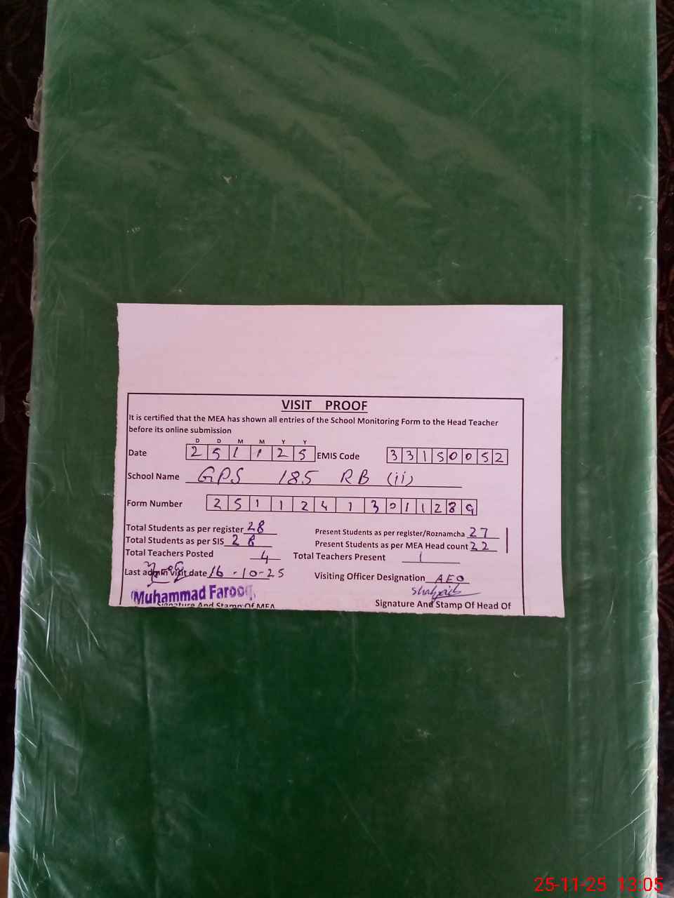 | EMIS Code: 33150052 | Name of School: GPS 185 RB II | |||