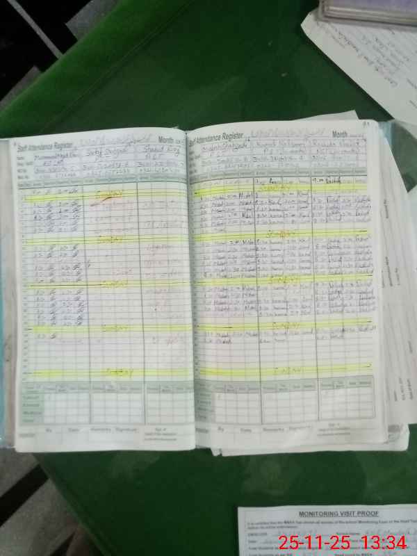 | Remarks (Use Separate Page if Required): Attendance of teaching staff and students on SIS Software is not updated Shahid Riaz PST is performing his duty as ALO in DC Office Gujranwala w e f 13 November 2021 vide DC EA 1804 Asghar Ali EST is on PSER Duty Arfan Masih EST is on the posted strength of this School but yet not updated on SIS Software Data as per provided by School Staff and found during physical visit | |||||