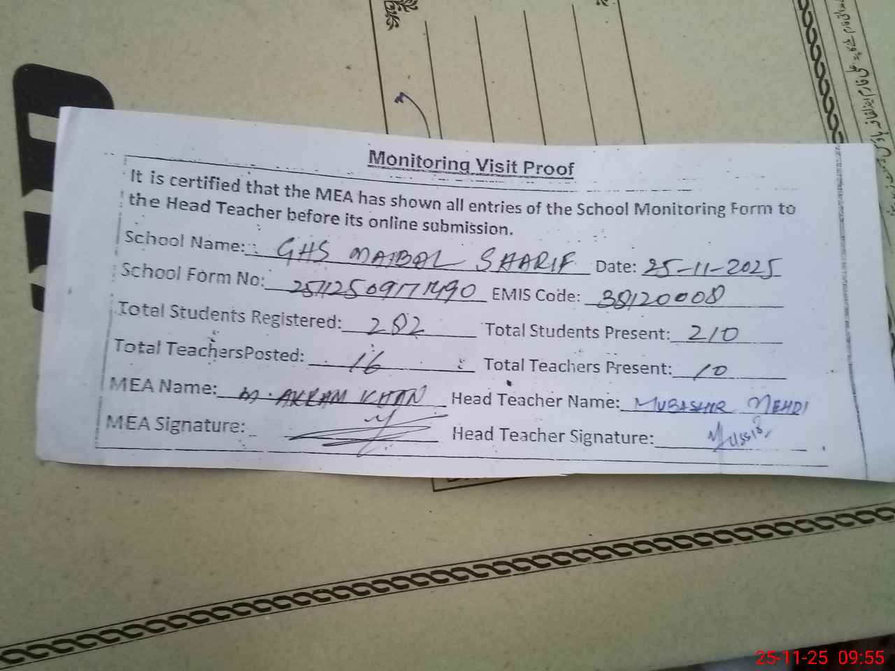 | EMIS Code: 38120008 | Name of School: GHS MAIBAL SHARIF | |||