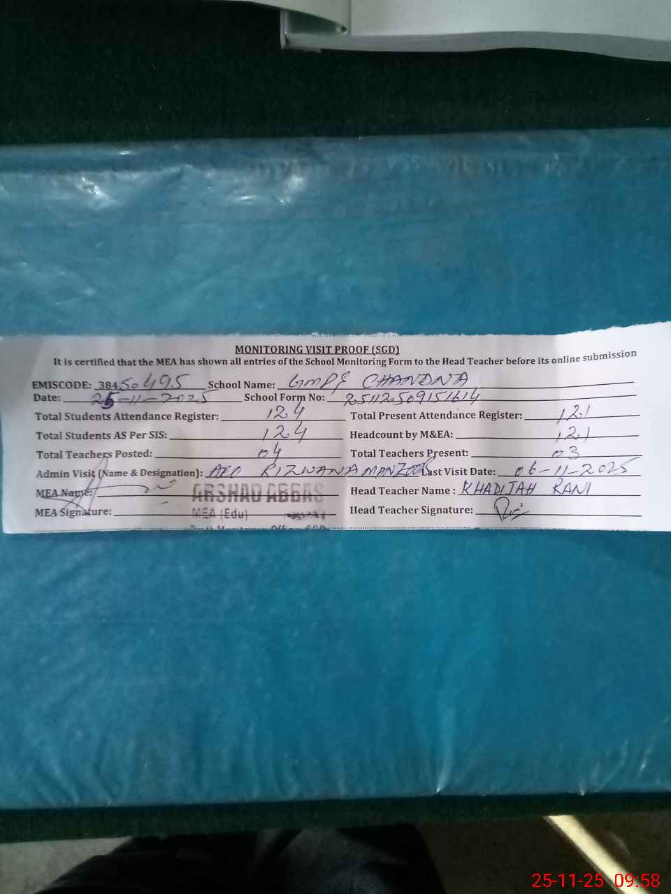 | EMIS Code: 38450495 | Name of School: GMPS CHANDNA | |||