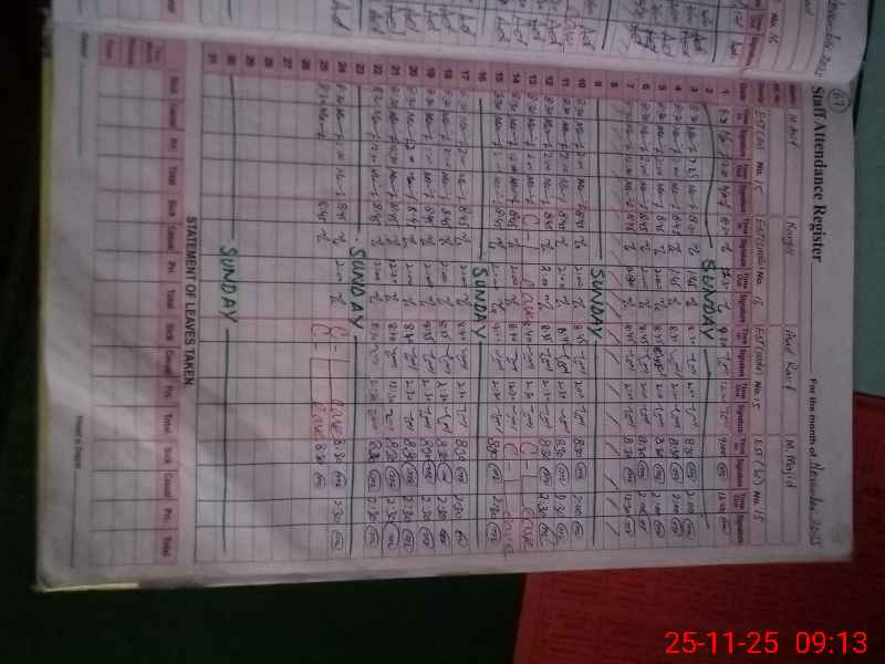 | 34**** | Sh**** Pa**** | Regular | 0 | 0 | 31 | 0 | 0 | 0 | 0 | 0 | 0 | Absent (Un-Authorized) | |