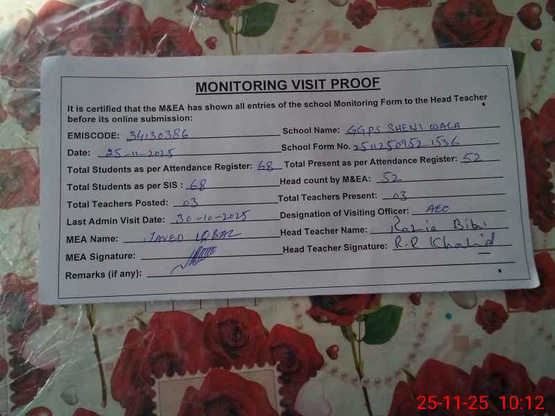 | EMIS Code: 34130386 | Name of School: GGPS SHENI WALA | |||