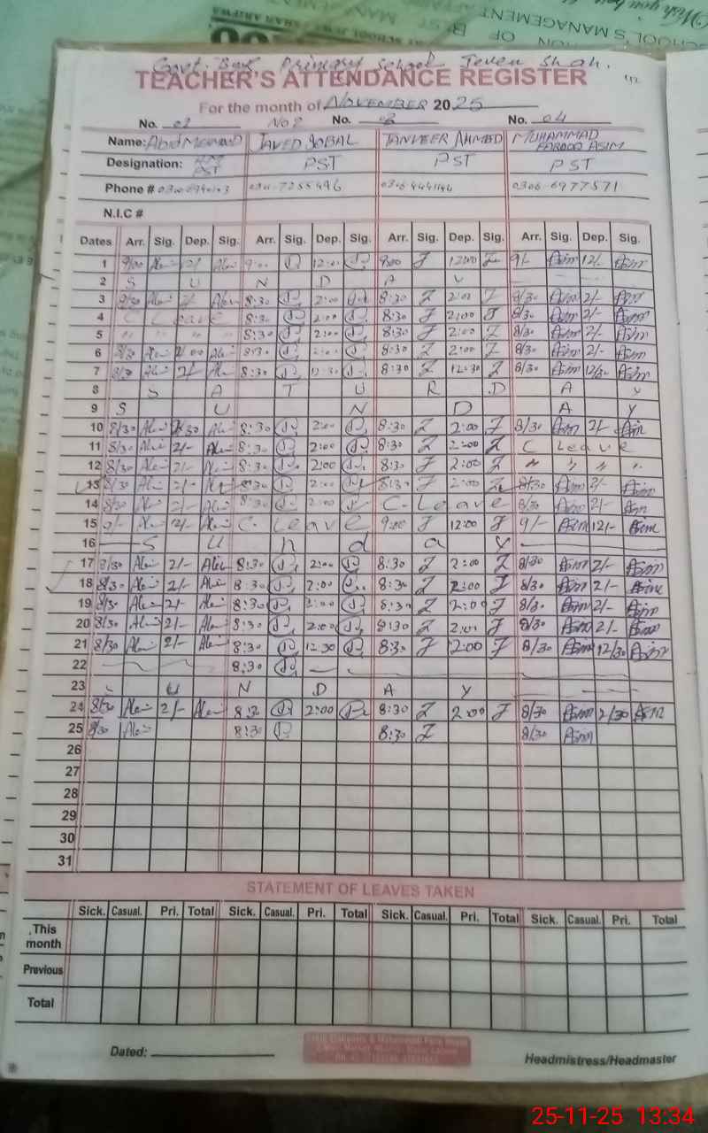 | Name: AB**** MA**** Designation: (School Headmaster's/Headmistress's) PST Phone/Cell Number: 03**** |