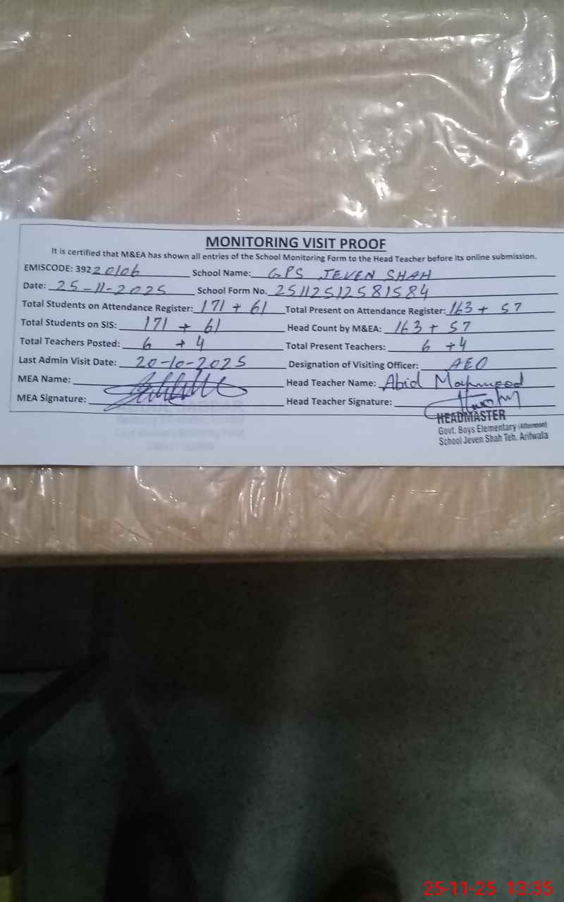 | EMIS Code: 39220106 | Name of School: GPS JEVEN SHAH | |||