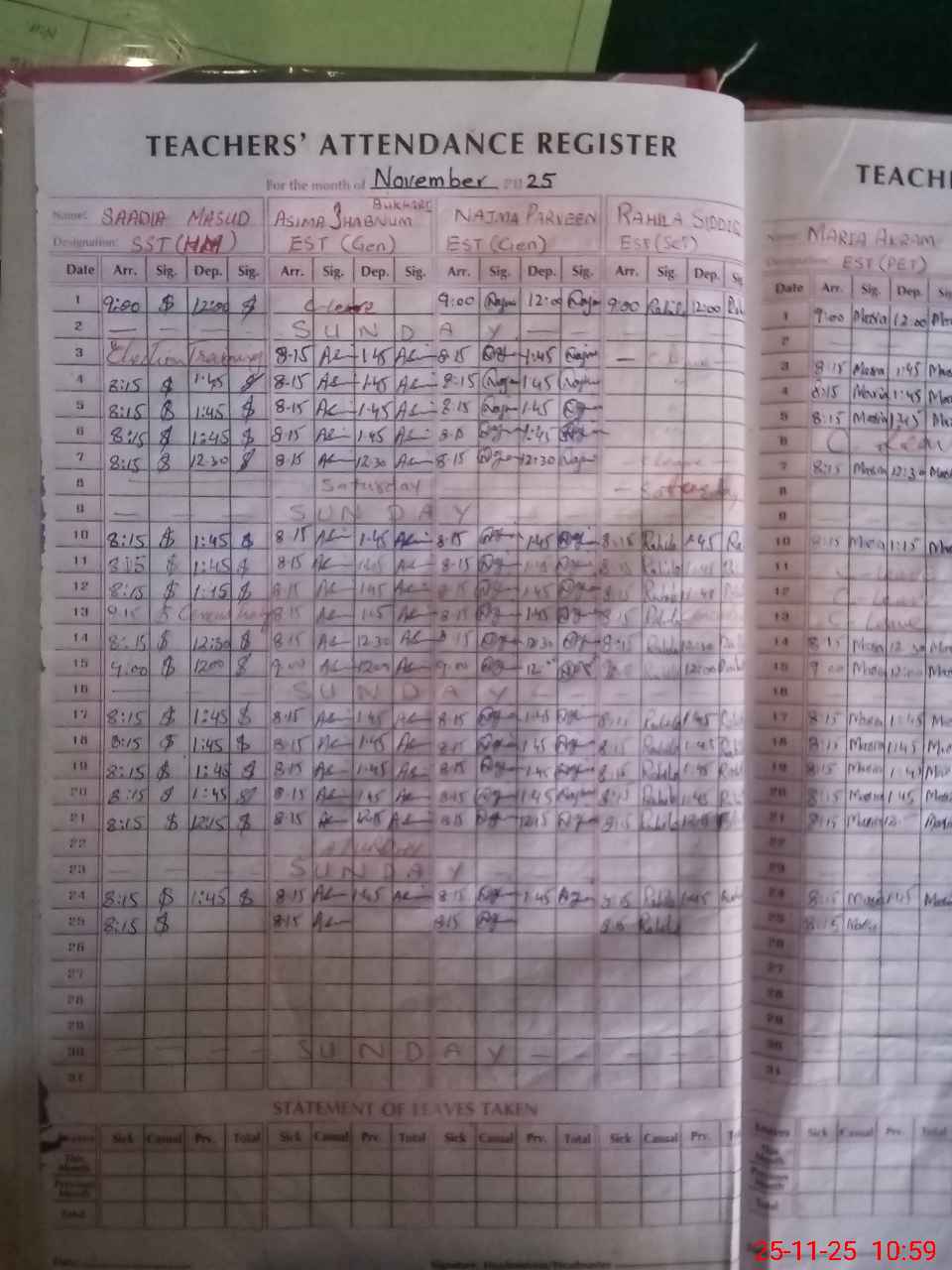 | Leave | Duty | Absent | Maternity | Medical | Ex- Pak |