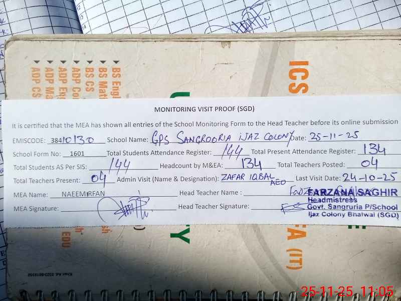 | EMIS Code: 38410130 | Name of School: GPS SANROORIA BHALWAL IJAZ COLONY | |||