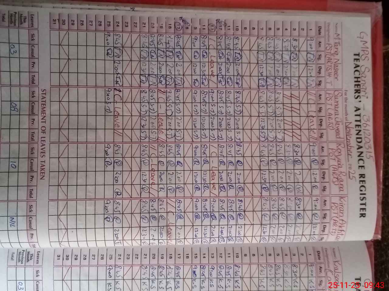 | CNIC | Full Name | Designation | R/C | Absence During Last Calender Month |