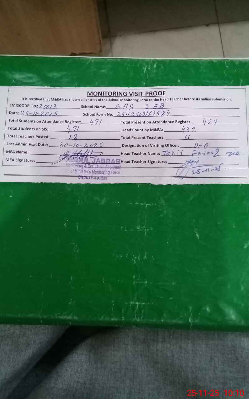 | EMIS Code: 39220013 | Name of School: GHS 1-EB | |||