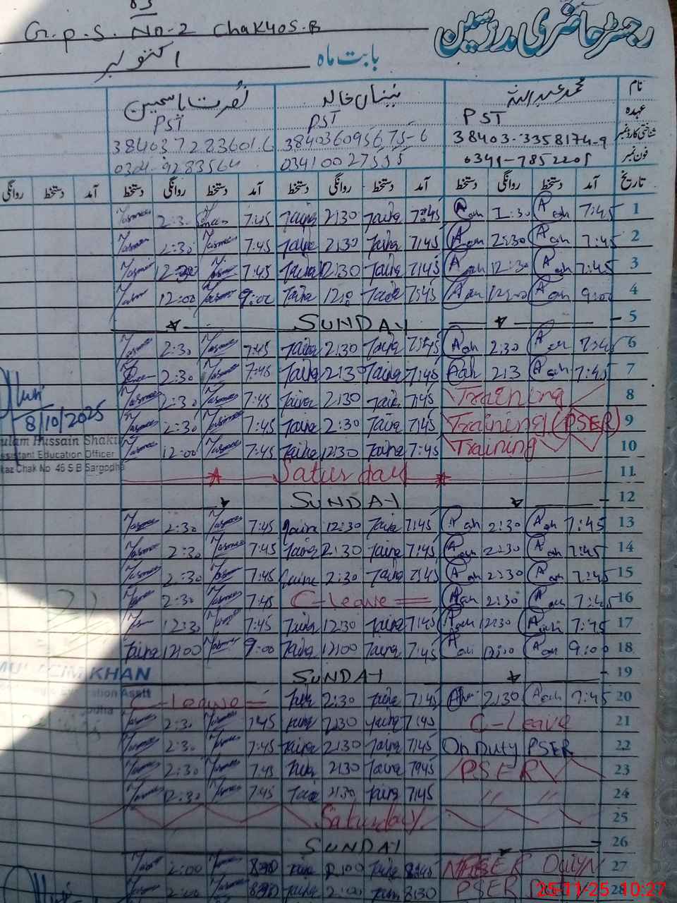 | Name: MU**** AB**** Designation: (School Headmaster's/Headmistress's) PST(SC_MATH) Phone/Cell Number: 03**** |