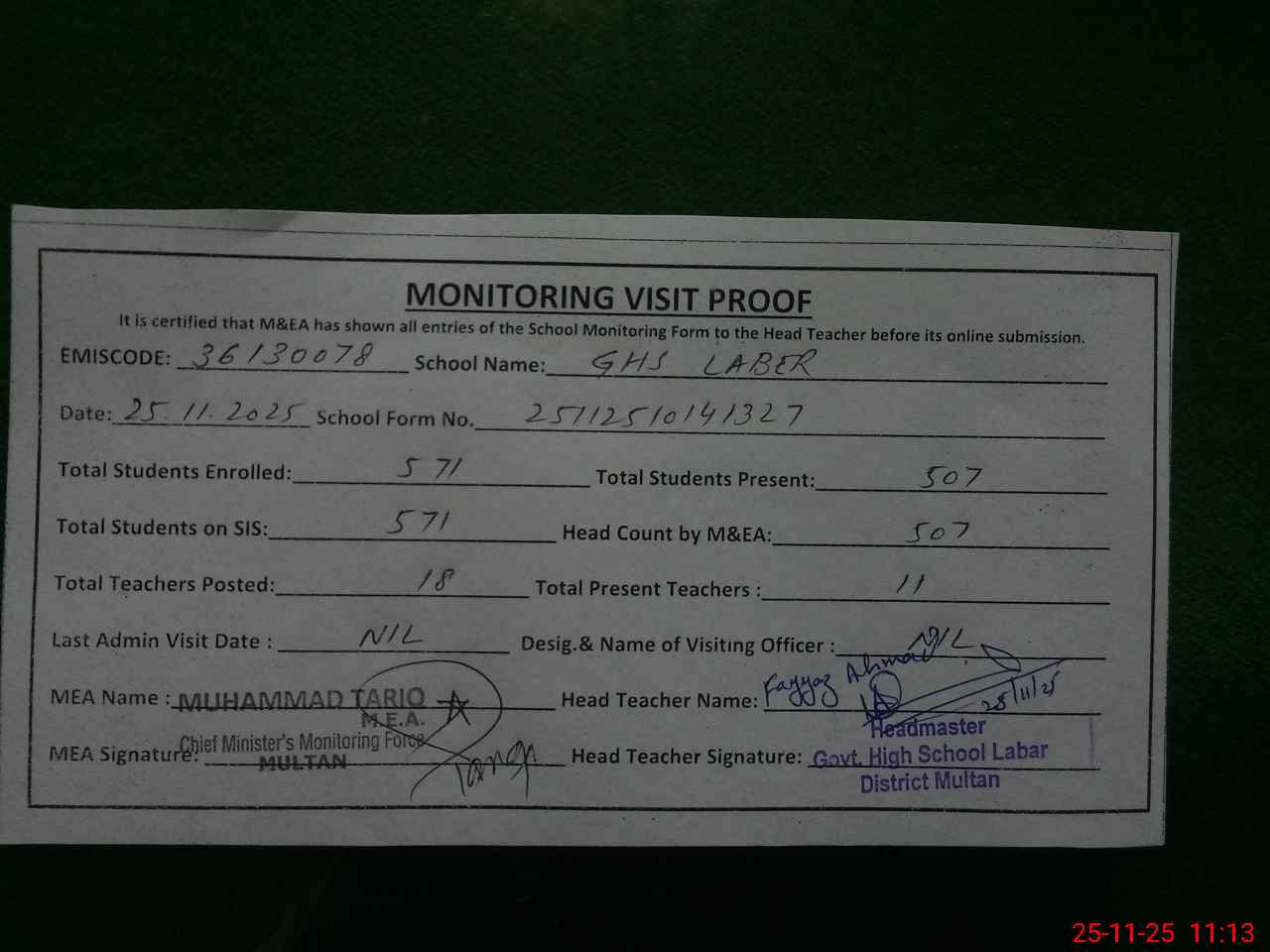 | EMIS Code: 36130078 | Name of School: GHS LABER P/O SIKANDARABAD | |||