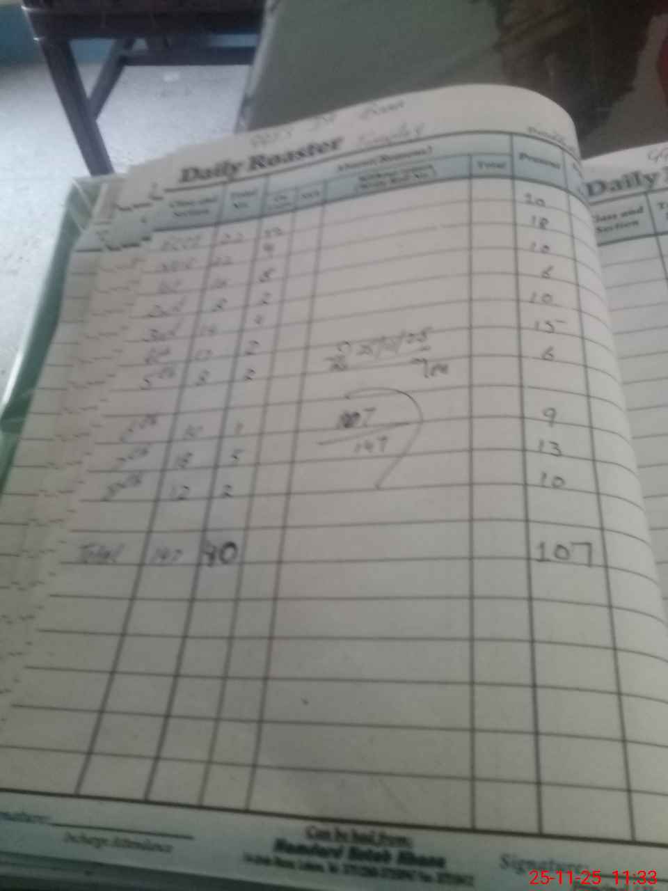 | Total Students Present | 0 | 12 | 10 | 6 | 10 | 15 | 6 | 9 | 13 | 10 | 109 | |||||