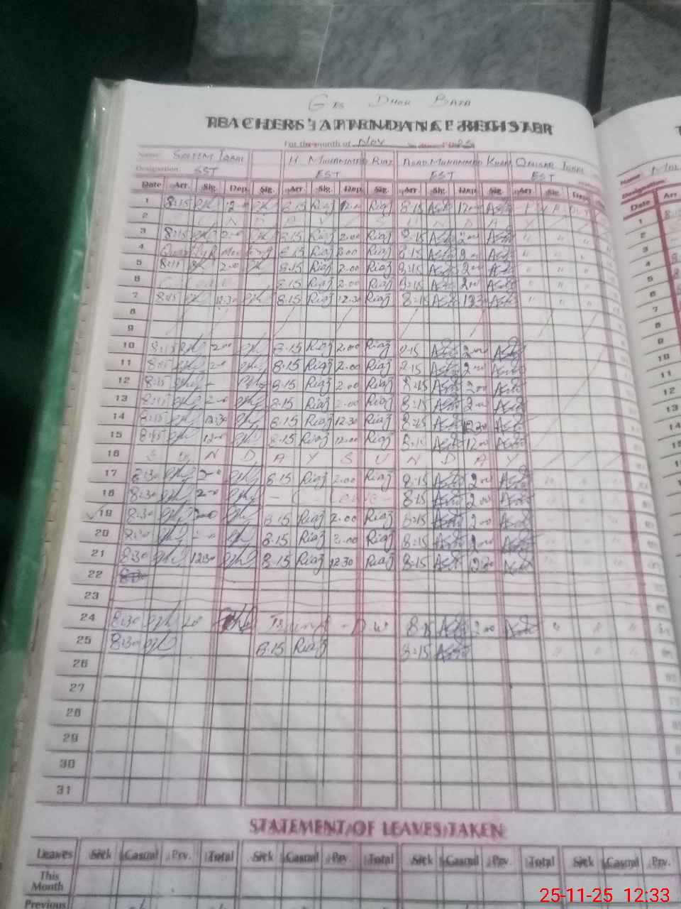 Leave Type | Remarks for today (Leave,Training, Exam,Absent,Late, Other duty) |