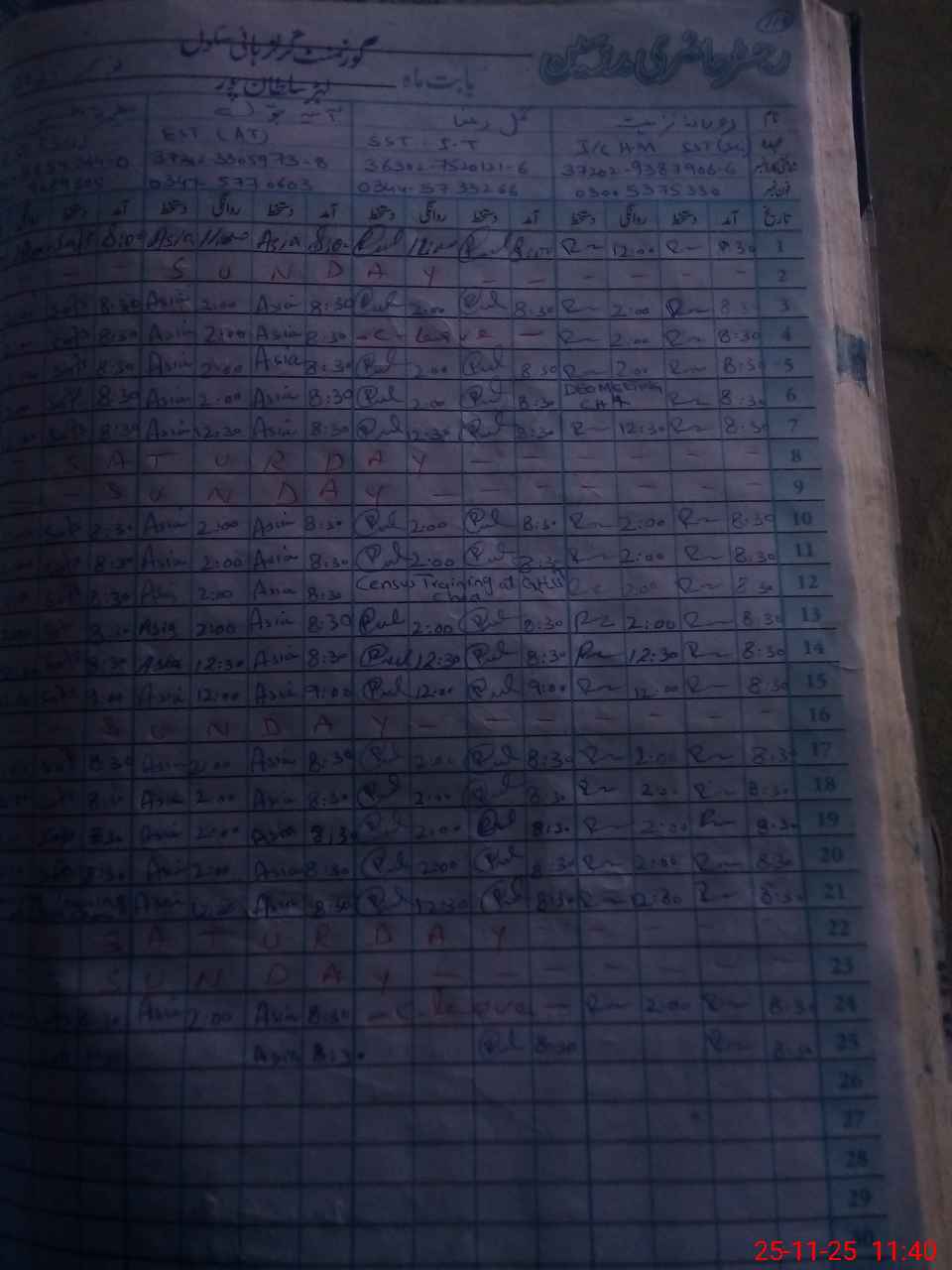 | CNIC | Full Name | Designation | R/C | Absence During Last Calender Month |