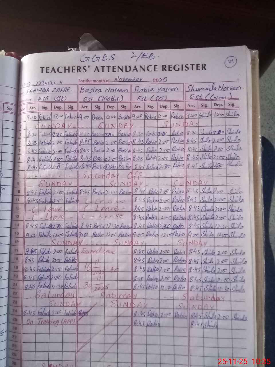 | Name: FE**** ZA**** Designation: (School Headmaster's/Headmistress's) SST(BIO) Phone/Cell Number: 03**** |