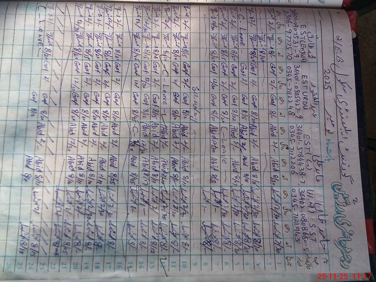 | Name: HA**** KH**** Designation: (School Headmaster's/Headmistress's) SST (GENERAL ) Phone/Cell Number: 03**** |