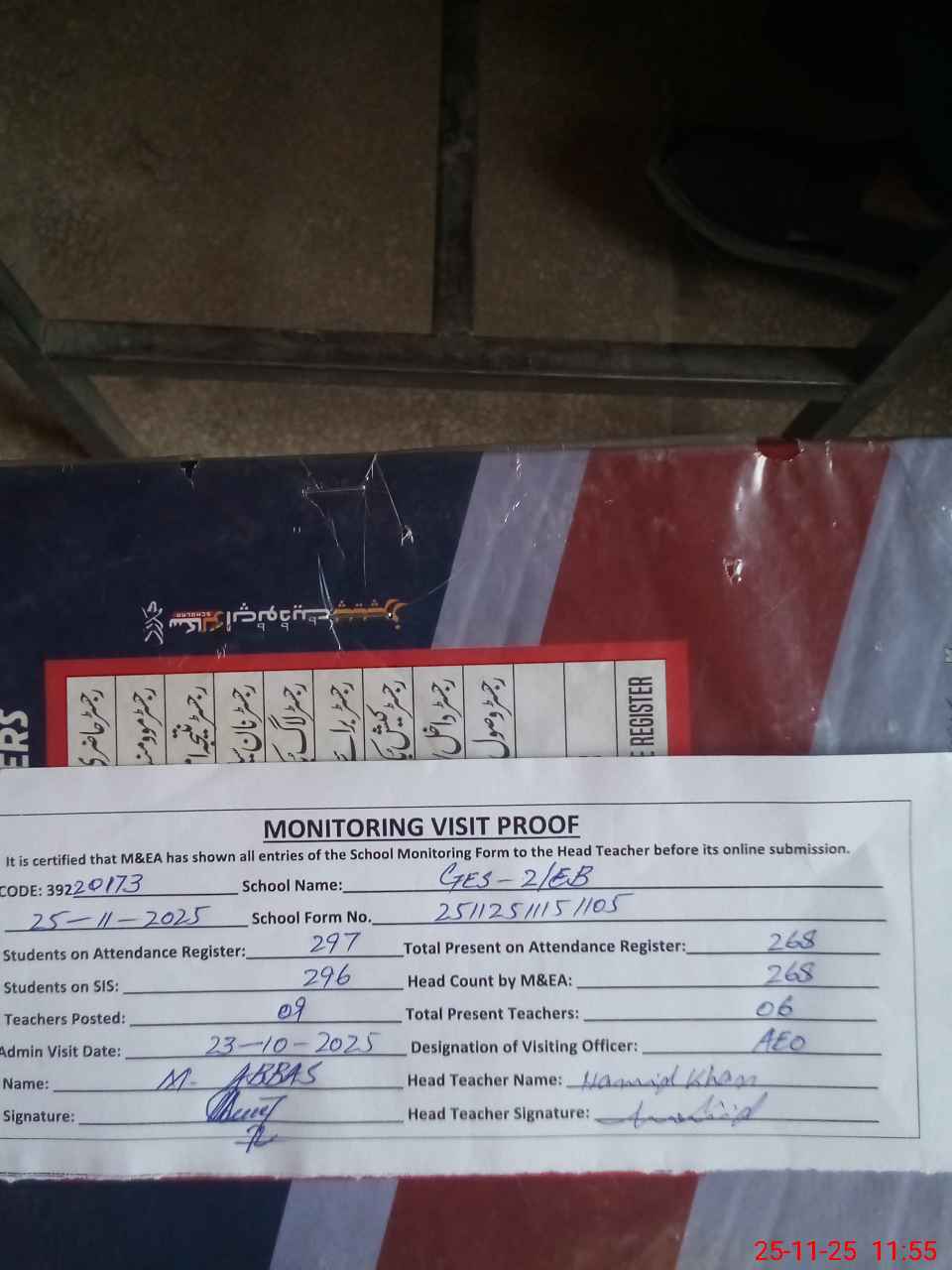 | Attendance Register | Head Teacher | MEA with School | Visit Proof |