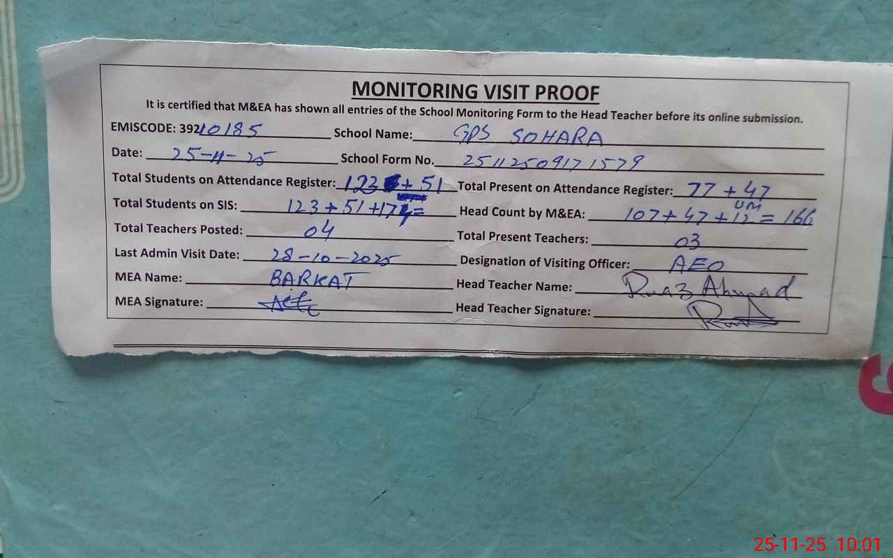 | EMIS Code: 39210185 | Name of School: GPS SOHARA | |||