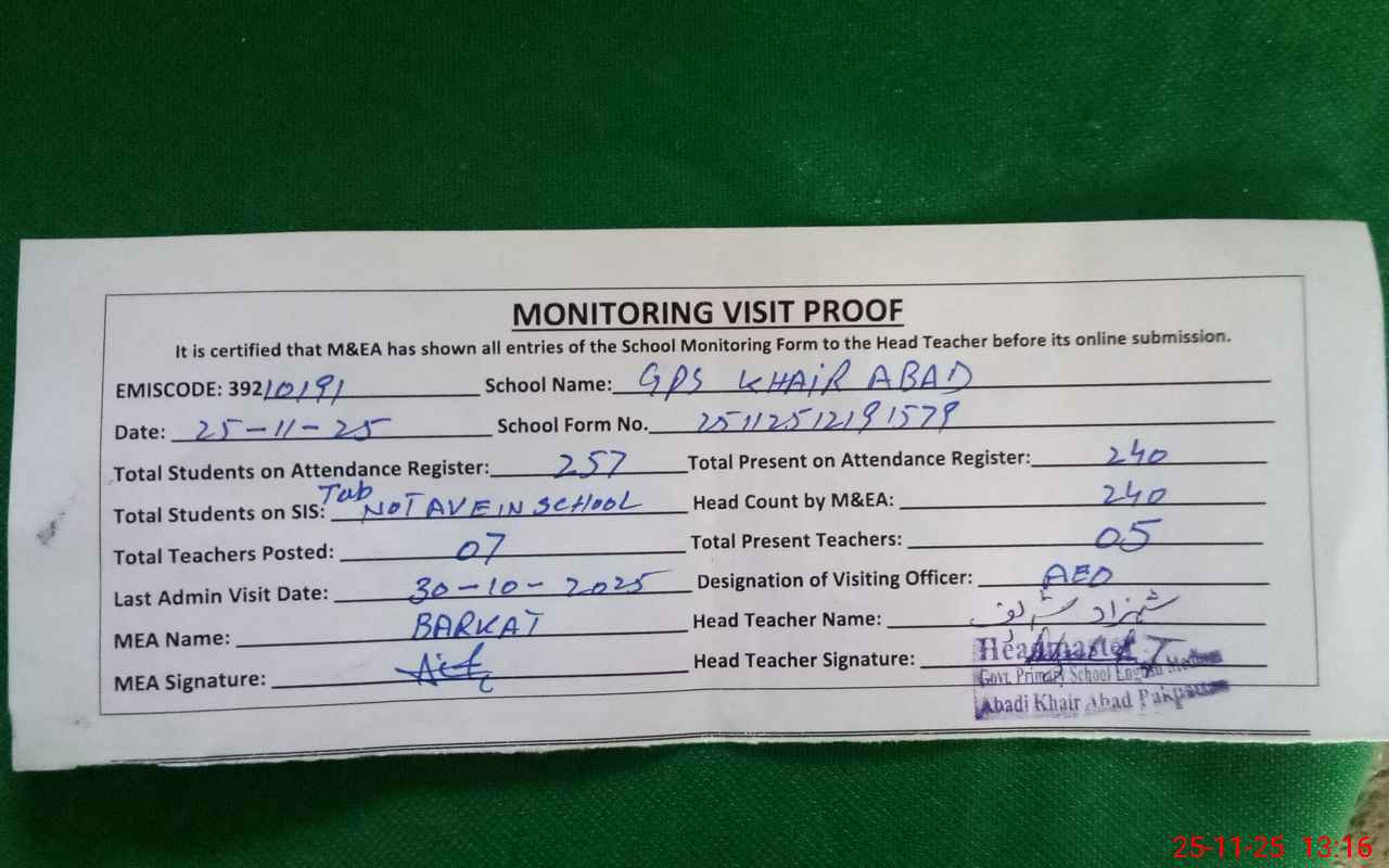 | EMIS Code: 39210191 | Name of School: GPS KHAIR ABAD PO PAKPATTAN | |||