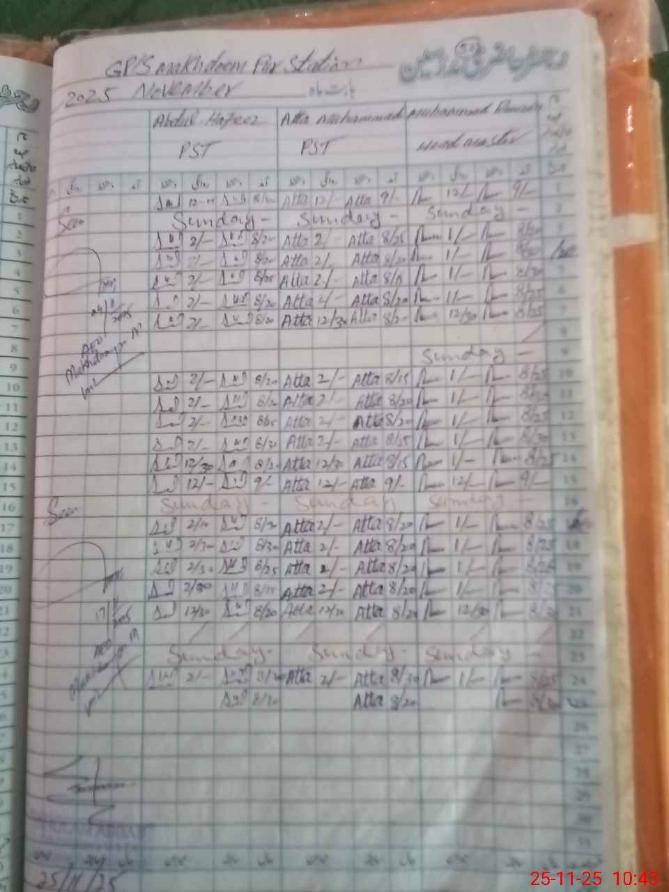 | CNIC | Full Name | Designation | R/C | Absence During Last Calender Month |