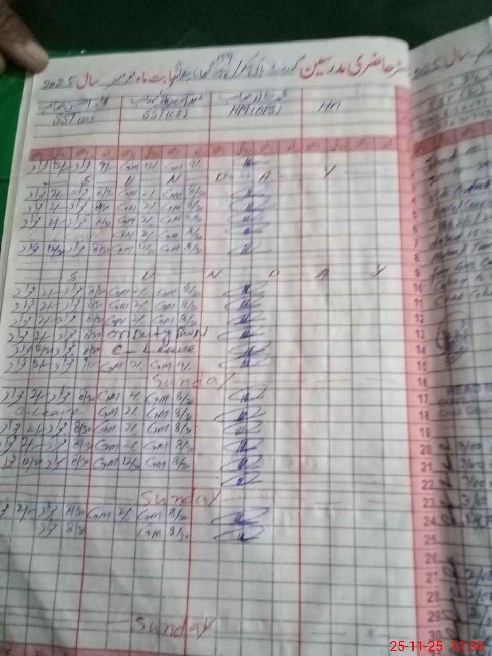 | CNIC | Full Name | Designation | R/C | Absence During Last Calender Month |