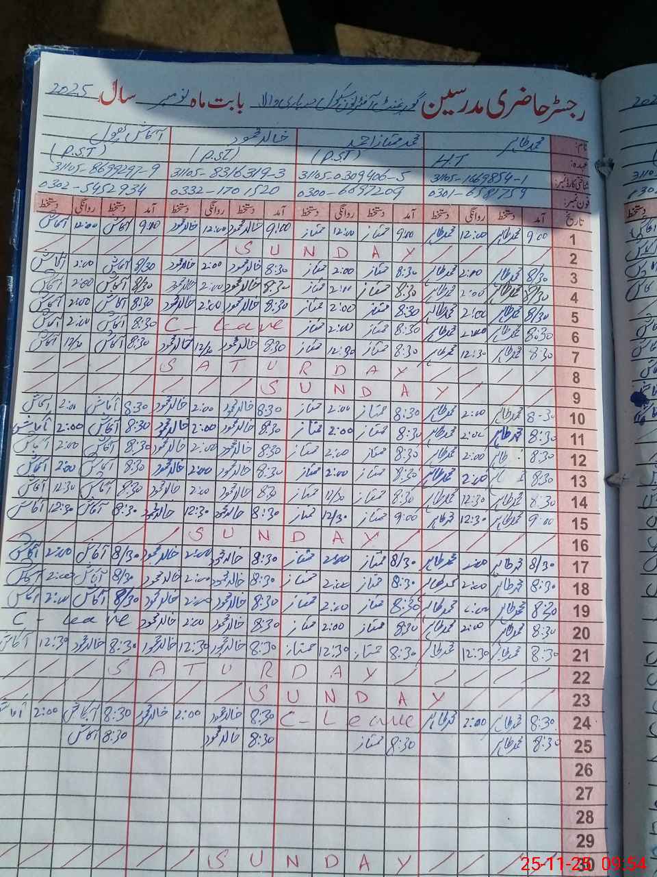 | CNIC | Full Name | Designation | R/C | Absence During Last Calender Month |