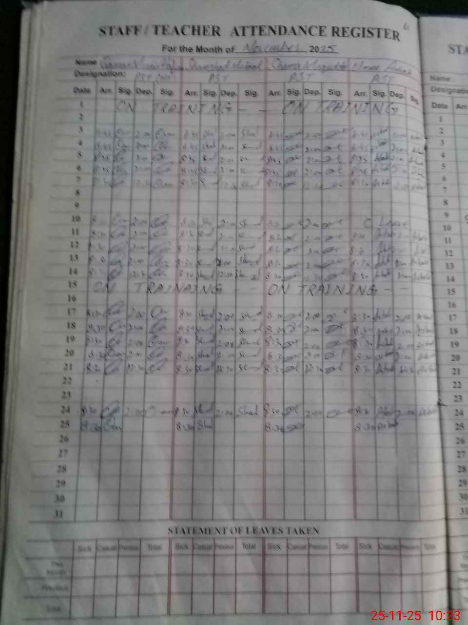 Leave Type | Remarks for today (Leave,Training, Exam,Absent,Late, Other duty) |