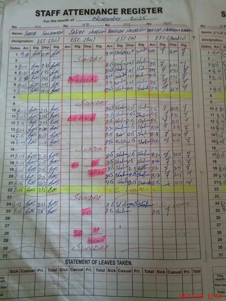 | Leave | Duty | Absent | Maternity | Medical | Ex- Pak |
