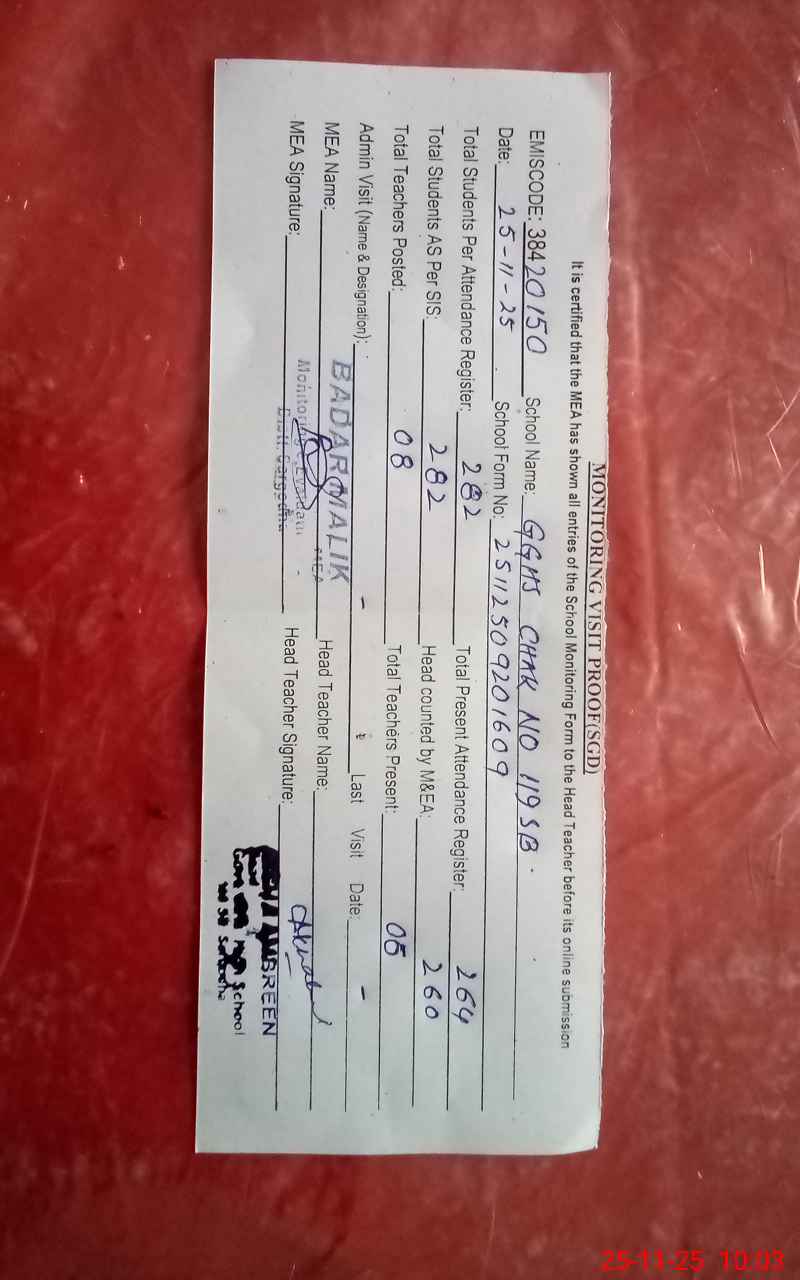 | EMIS Code: 38420150 | Name of School: GGHS CHAK NO.119 SB | |||