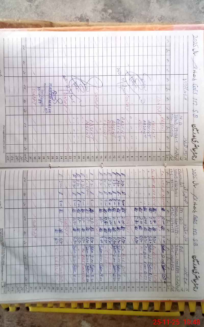 | CNIC | Full Name | Designation | R/C | Absence During Last Calender Month |