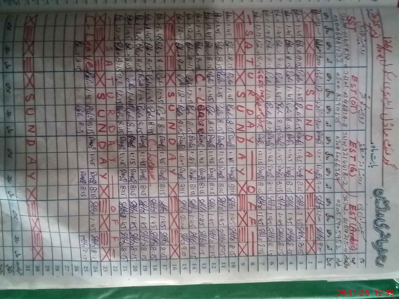 | CNIC | Full Name | Designation | R/C | Absence During Last Calender Month |
